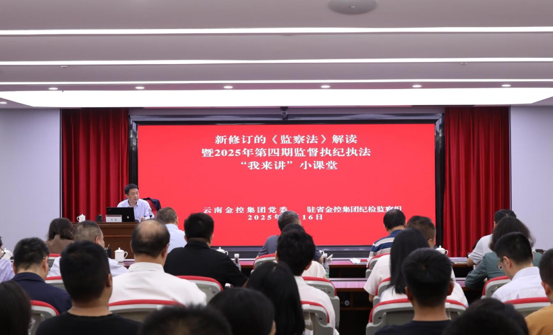 云南金控集團舉辦新修改《中華人民共和國監(jiān)察法》解讀暨2025年第四期監(jiān)督執(zhí)紀執(zhí)法“我來講”小課堂 2025-07-18 為深入貫徹習近平總書記關于全面從嚴治黨的重要講話和重要指示批示精神,全面落實“紀檢監(jiān)察工作規(guī)范化法治化正規(guī)化建設年”行動部署,持續(xù)深化黨紀法規(guī)教育,推動集團干部員工準確把握《中華人民共和國監(jiān)察法》(以下簡稱《監(jiān)察法》)的核心要義與實踐規(guī)范。7月16日,金控集團舉辦新修改《監(jiān)察法》解讀暨2025年第四期監(jiān)督執(zhí)紀執(zhí)法“我來講”小課堂,邀請省紀委監(jiān)委法規(guī)室主任劉宏同志就《監(jiān)察法》進行解讀輔導,駐省金控集團紀檢監(jiān)...... more